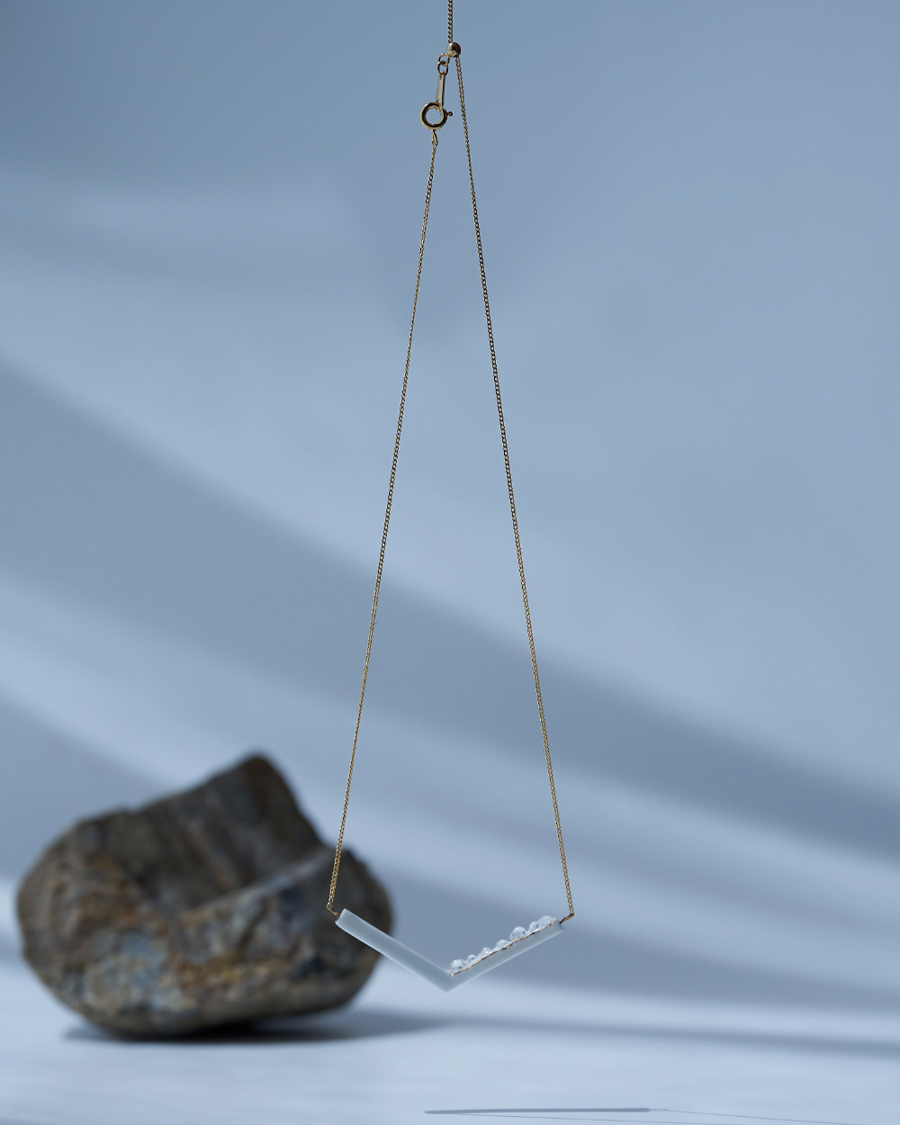 磁器の存在感とガラスの透明感、対照的な物を合わせる事で陰陽のバランスが不思議とおもしろい。